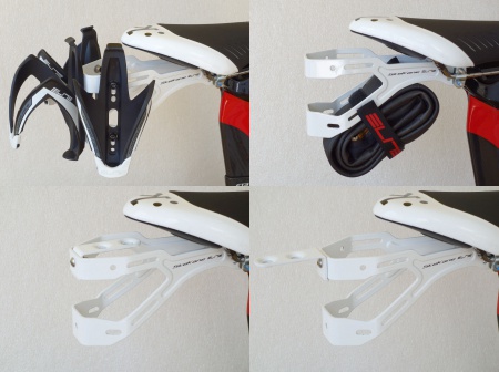 サドルの後ろにボトルケージやアクセサリーを取り付けるための軽量アルミニウム製リアマウントシステム。