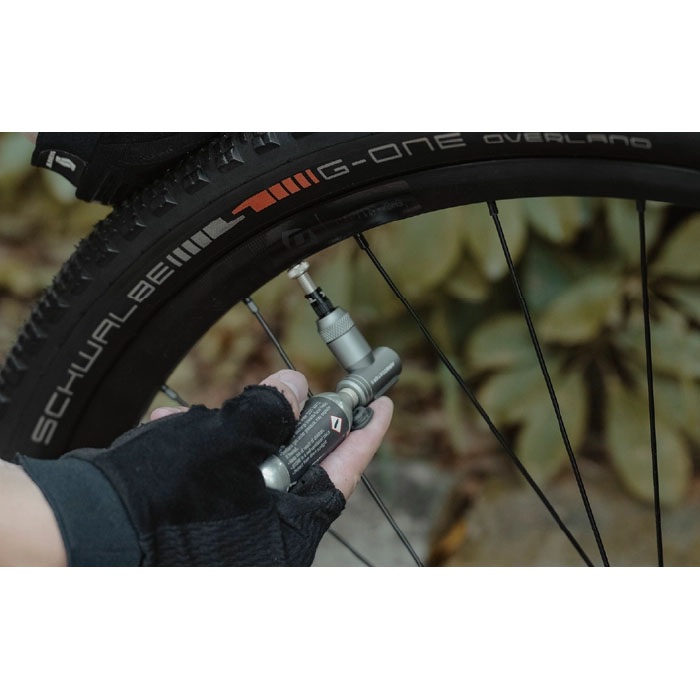 CNCアルミ製の超小型CO2インフレーターです。ダブルエンドデザインを採用し、片側はカートリッジの安全な保管用、もう片側が充填用として機能します。これにより、使用直前までカートリッジをヘッドに装着したまま携帯可能。仏式・米式バルブに対応し、重量わずか22.5g。