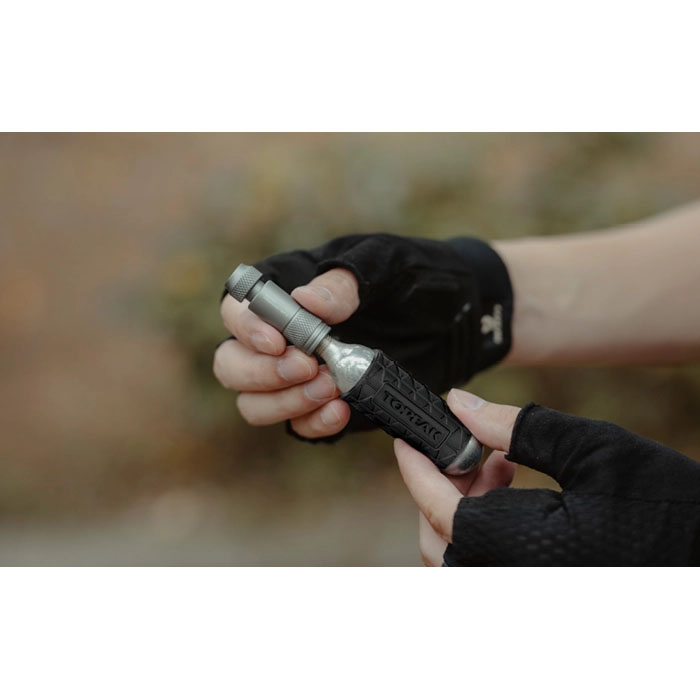 無駄を削ぎ落とした超小型・超軽量のCO2インフレーターです。CNCアルミ製で、重量は16.3g。仏式・米式バルブに対応し、ネジ付きカートリッジを装着して使用します。サドルバッグやツールケース内でも邪魔にならず、レースやロングライドでの携帯性を最優先したモデルです。16Gモデルは、ネジ付 16g CO2カートリッジ1本とCO2スリーブ1個が付属しています。