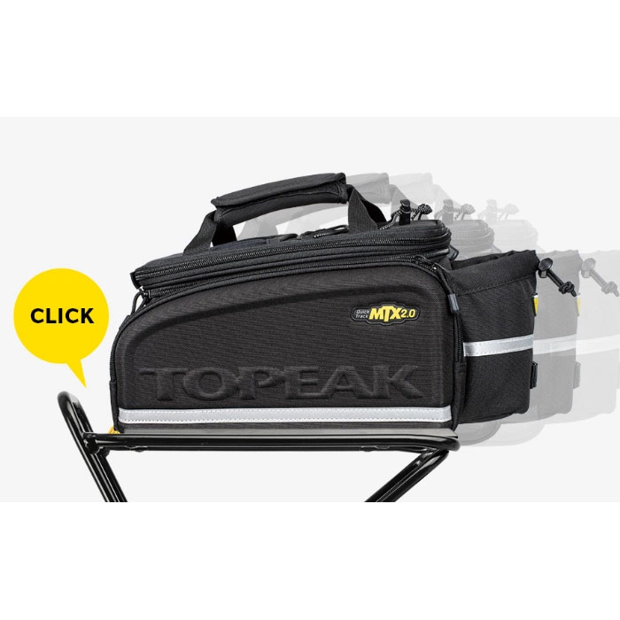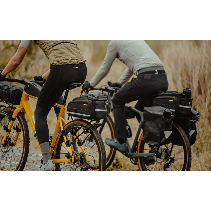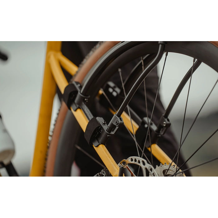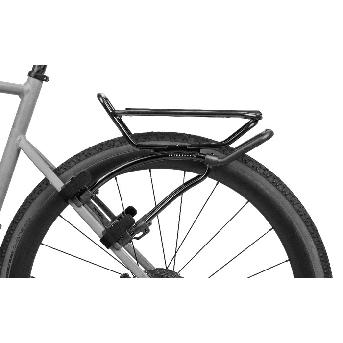 ダボ穴のないグラベルバイクやロードバイクのシートステーに装着可能な、クイックマウント式のリアキャリアです。強力なベルクロストラップ固定により、様々なフレーム形状に簡単に取り付けられます。スロット調整機構により、シートステーの角度を問わず天板を地面に対し水平にセット可能。最大積載量は9kg(静止時)を誇り、QuickTrackシステム(MTX、RXトランクバック)に対応。