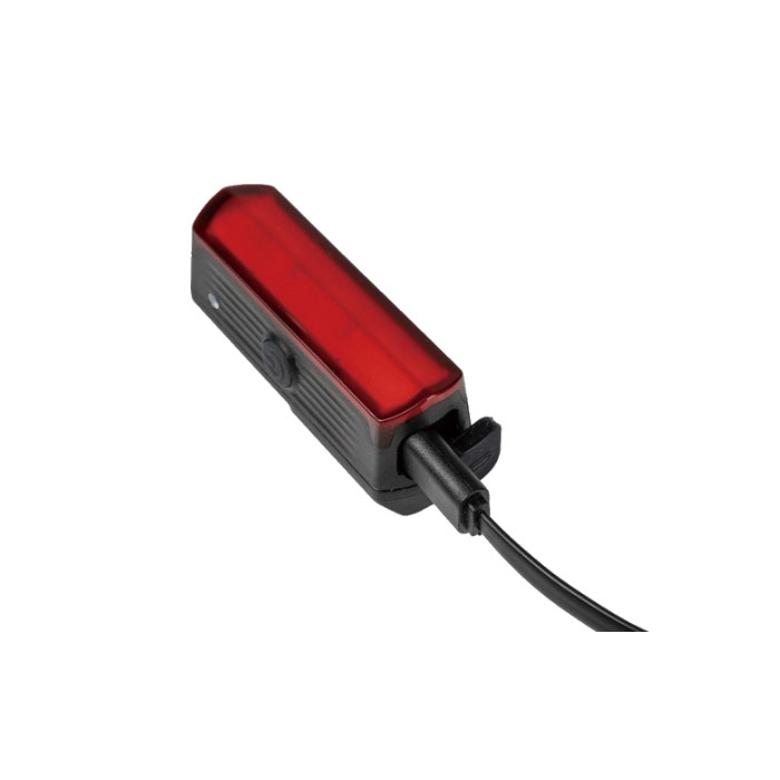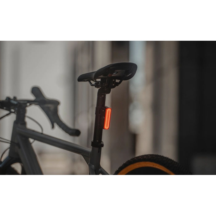 最大60ルーメンの明るさを備えたUSB Type-C充電式テールライトです。高輝度COBレッドLEDを搭載し、点灯・中輝度・点滅・パルスの4モードで最長40時間使用可能。マグネット式で簡単に着脱でき、シートポストにしっかり固定できます。オートオン/オフ機能付きで暗くなると自動点灯。防水性能はIPX6、重量は38gです。
