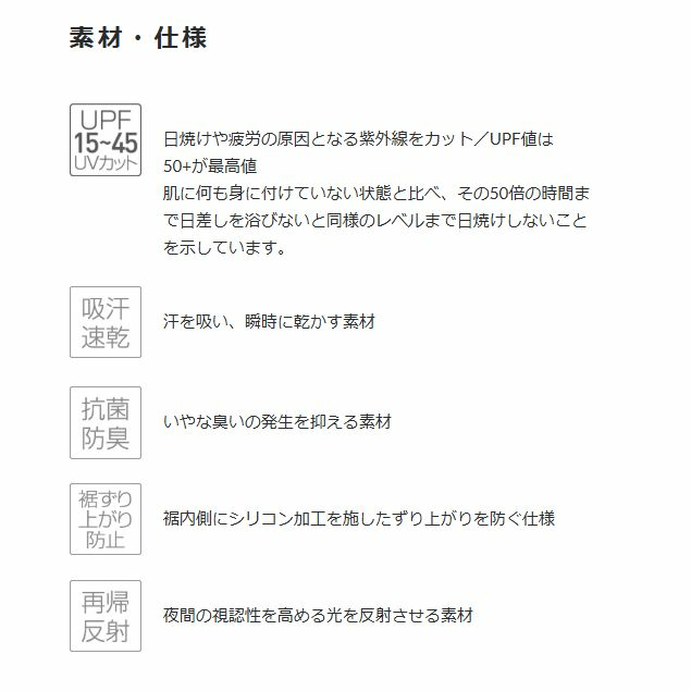 - 軽くソフトな着心地と酷暑の際も涼しさを確保する薄手軽量素材を採用