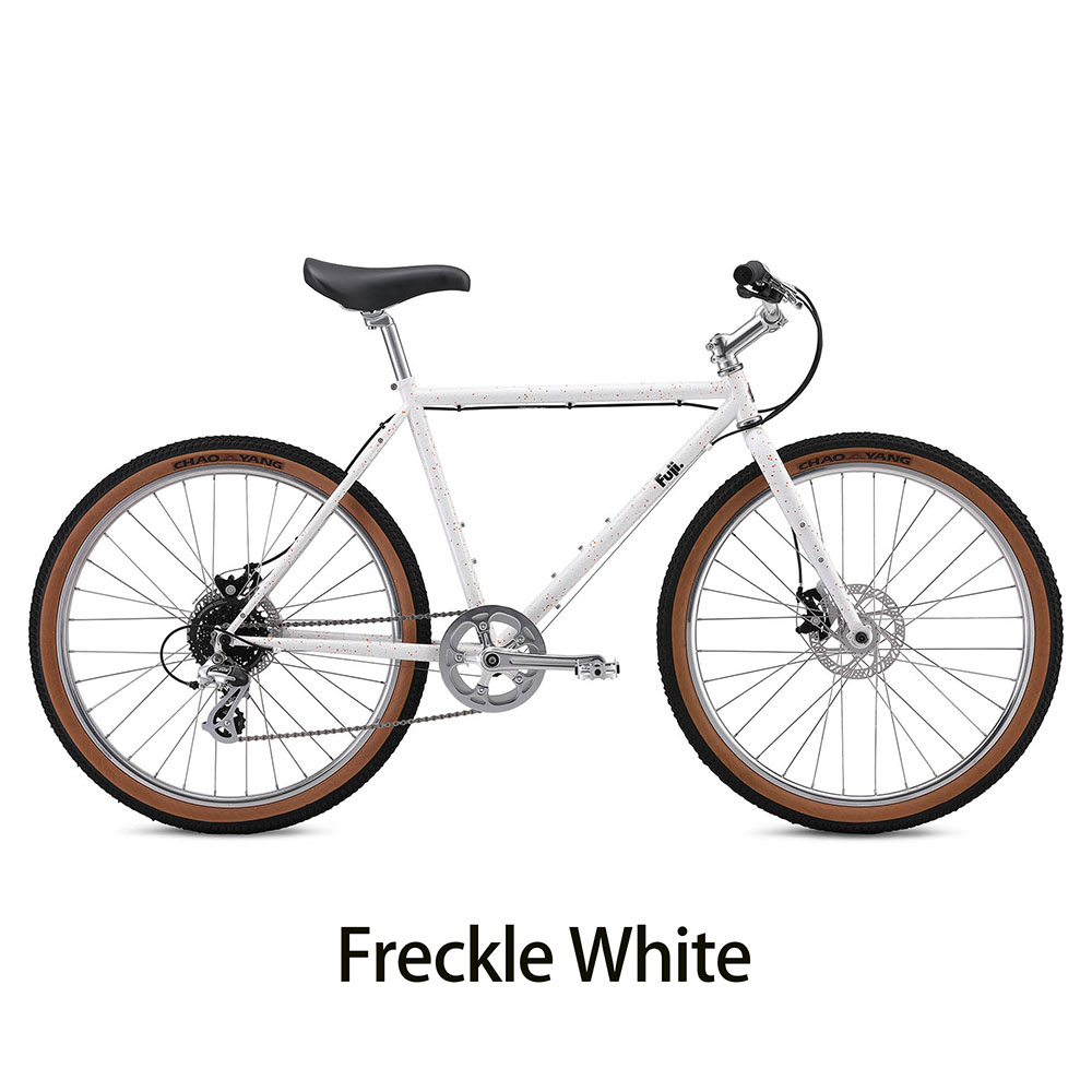 懐古主義にとどまらず、現代の解釈で全地形を楽しむために生まれたネオクラシックATB。ピュアな山遊びを行うために発生したMTB(Mountain Bike)に対し、山岳・市街地の両用を目的とし開発されたATB(All Terrain Bike=全地形型自転車)は、より曖昧な定義のもと、自由度の高い設計やコンセプトが用いられ、特に1980年代後半から1990年代初頭にかけて絶大な人気を誇った。そんなかつての時代背景に思いを馳せながら、現代のバイクトレンドをブレンドし再解釈。ブレーキ方式は機械式のディスクブレーキを採用し、ダウンチューブのボトルアイレットは三連化。さらにはフォークブレードとシートステーにもアイレットを追加することで、フレームバッグや前後キャリアの取り付けも可能となっており、随所で単なる懐古趣味にはとどまらないディテールを採用している。推奨最大タイヤサイズは26″x2.3″(26″x1.95″標準装備)、センタースタンド台座も備えており、コミューター~バイクパッキングまで網羅した拡張性はまさしくネオクラシックスタイルと呼べるだろう。