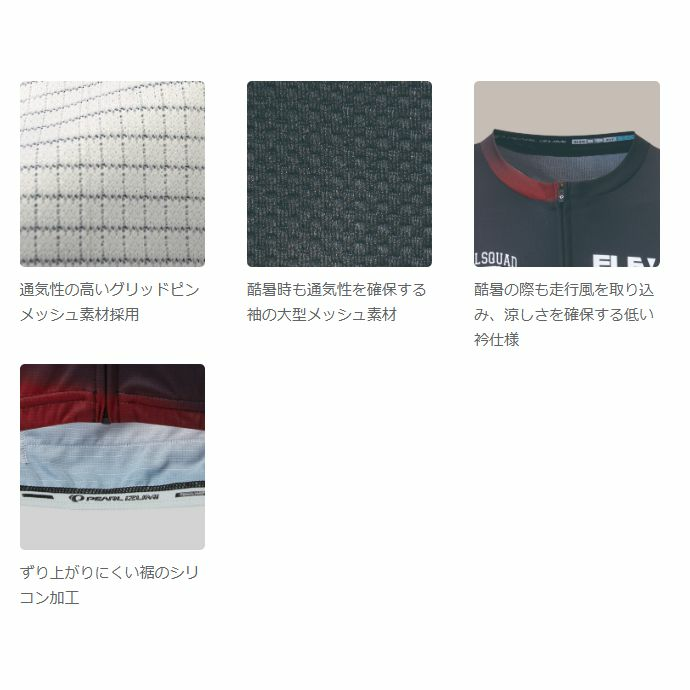 酷暑でも通気を確保する、薄手高通気のグリッドピンメッシュ素材を身頃部分に採用。柔らかい感触のメッシュを袖に配置、涼しい低い衿仕様にアップデート。「BIKE LIFE」をテーマに各シーンを切り取ったプリントグラフィックをラインナップ。