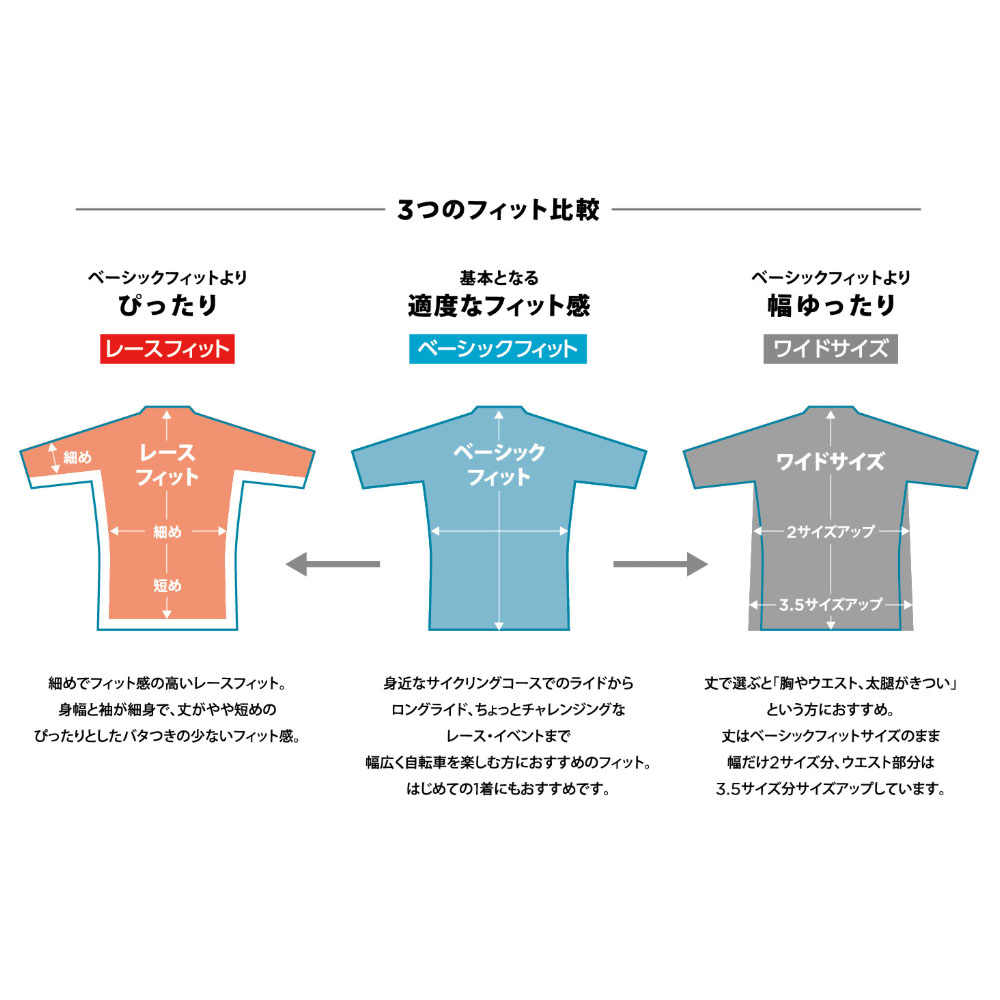 ※本商品はバタつきを抑える適度なフィット感のベーシックフィットのモデル(細身のレースフィットはN621-B プリント レース ジャージ)