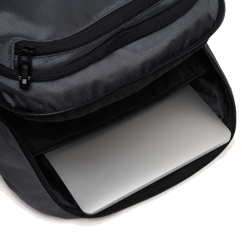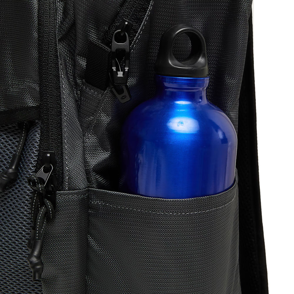 撥水加工を施した耐久性のあるポリエステル素材を採用したバックパック。メイン収納にはラップトップ収納があり、メイン以外にも4箇所の小物ポケット収納で機能性に優れた構造。両サイドにはボトルが入るポケットと、バックパネルとショルダーストラップはエアーメッシュ素材を使い通気とクッション性を併せ持つ。軽量で男女問わず幅広いユーザーに向けたアイテム。