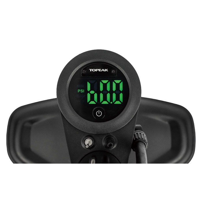 ● 最大60psiまで測れるLEDデジタル ゲージ付(psi、bar、kg/cm2対応、英式バルブの空気圧測定はできません)