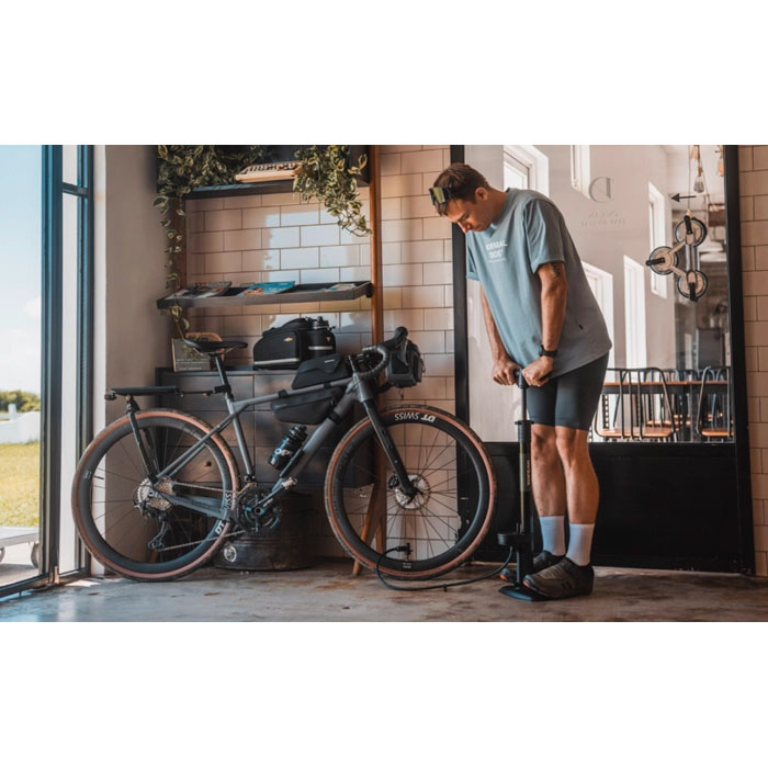 MTBやプラスサイズタイヤに最適な大容量バレルを採用したフロアポンプ。低圧域での繊細な調整が求められるオフロード走行において、視認性に優れた3インチLEDデジタルゲージが正確な空気圧管理をサポートします。大径バレルにより1ストロークあたりのエアボリュームが大きく、太径タイヤにもスピーディーに充填可能。仏式バルブに最適化された高流量のターボヘッド、安定感のあるワイドベース、握りやすい大型ハンドルなど、過酷な使用環境にも対応するタフな設計が特徴です。