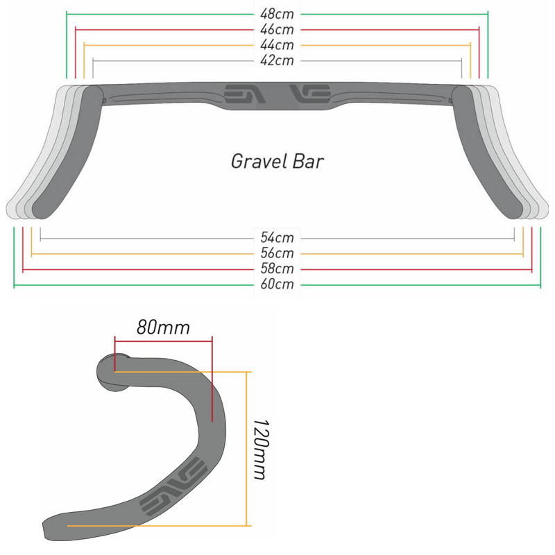 BAR GRAVEL 31.8はフードのC-C幅を42cmから48cmまで用意。マウンテンをはじめとする未舗装路において、幅広なハンドルバーはバイクコントロールを改善し、ライダーに自信をもたらすことは今までの経験から明らかです。 ENVEがこれまで行ってきたワールドツアー用のハンドルバーを開発するなどの経験により、人間工学的にみても快適さをもたらすグラベルハンドルバーを開発することができました。