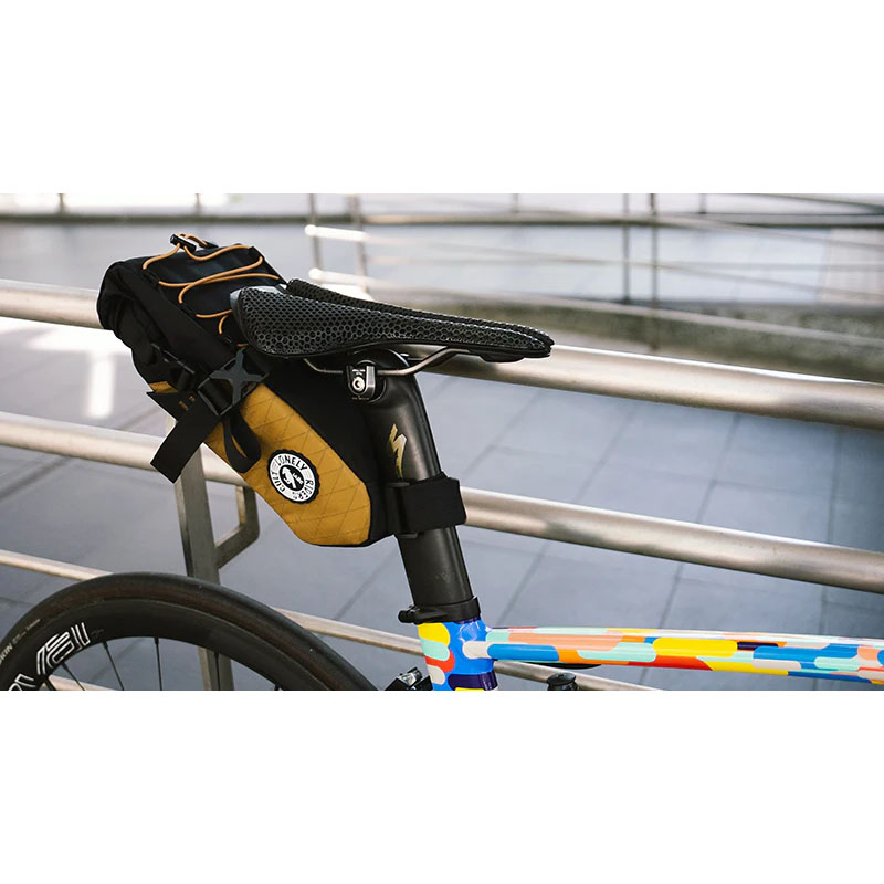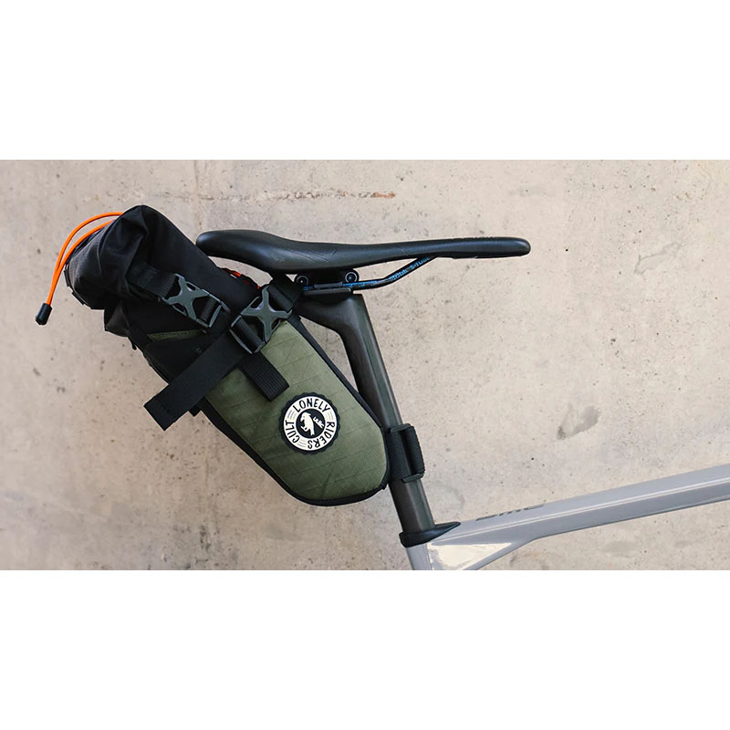すべてのラッドテイルサドルバッグには、さまざまな用途や用途に対応した独自の三角形カラビナが付属しています。バランスの取れた安定性のために、Radtail GTは1つのベルクロと2つのバックルを備えています。