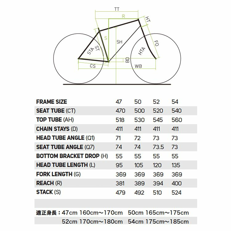 ◆ サイズ/適正身長 : 50cm/165~175cm、52cm/170~180cm