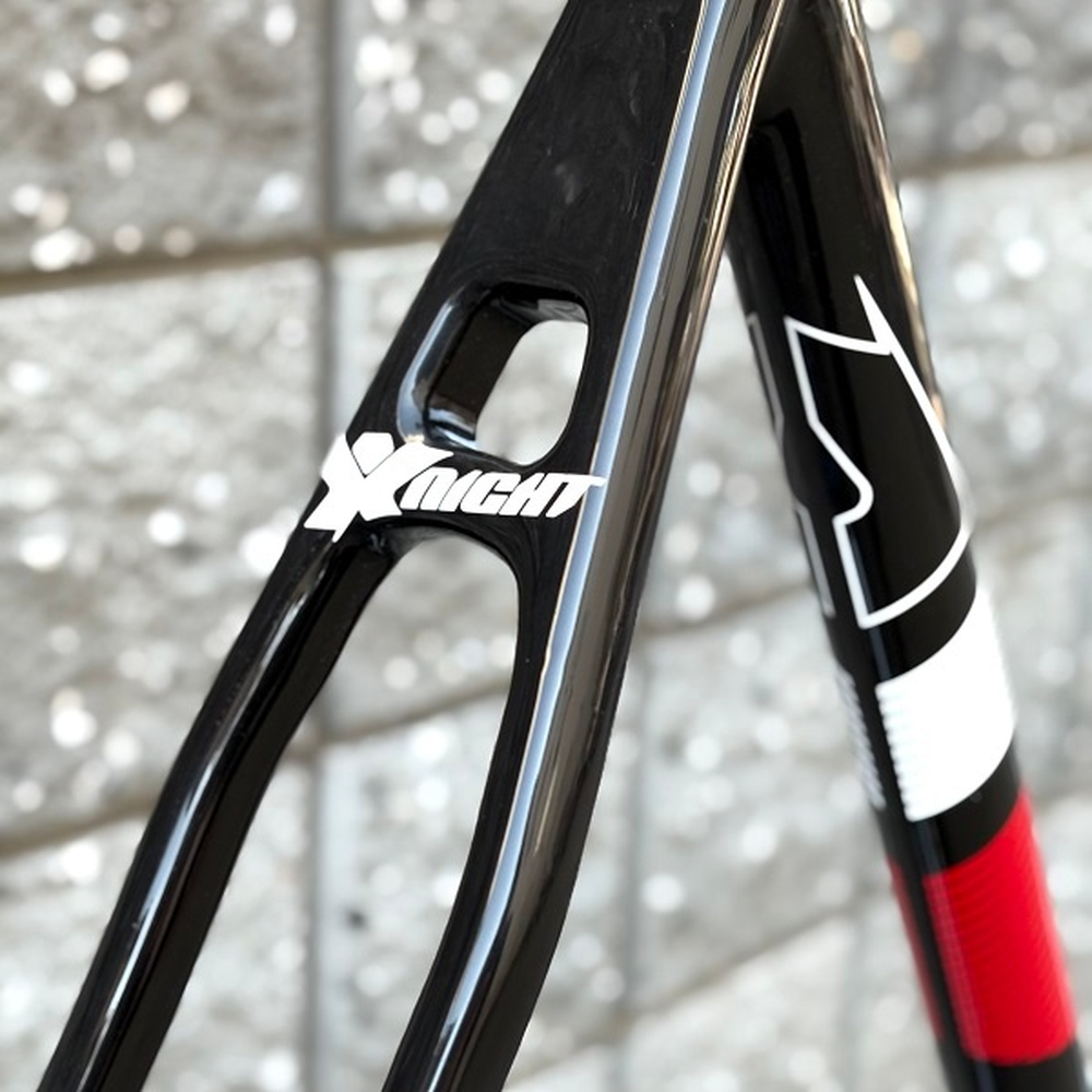 新しいX-NIGHTはHELLIUM SLと同様のコンセプトの元に開発され、扁平加工が施されたシートステーやカーボンモノコック成型されたリアエンド等ダート走行で必要とされる剛性を衝撃吸収性、更に軽量性の両立を追い求め、生まれ変わりました。まるでロードバイクのような軽量性は急勾配の上り、マッドコンディション、担ぎ区間等あらゆるシーンで圧倒的なアドバンテージを得る事ができます。もちろんケーブル類はフレーム内蔵とされ、Di2、EPSの電動コンポーネントにも対応し、トラブルのリスクを回避いたします。上下異形のヘッドチューブやPressfit30(68x46)を採用したBB、大口径のダウンチューブは語彙性もしっかりと確保し、漕ぎ出しの軽さやパワー伝達効率を向上させています。シクロクロスチームSunwebでの実戦投入され、その実力は折り紙つきです。