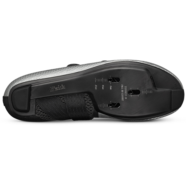 この革新的なレーシングシューズは、高度なフィッティングテクノロジーから新しいアウトソールまで、すべてが究極のパワー伝達のために設計されています。カーボンファイバーレイアップにより軽量化と高剛性を実現し、stiffness index 10のこのアウトソールはフィジークシリーズで最も硬度レベルの高いシューズです。