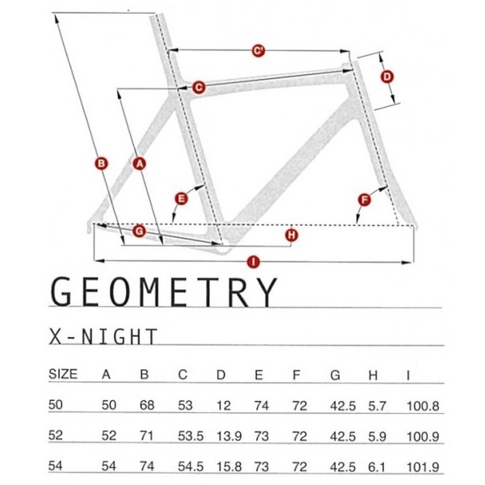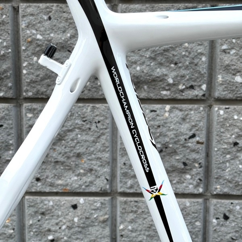 3大シクロシリーズレースのうち、UCIワールドカップとGVAトロフィーの2冠を達成したケビン・パウエルスも愛用する「X-NIGHT」。チェーンステーとフォークのクリアランスやCNCによる最薄エンド、またフルアウターケーブルでフレーム中通しなどマッドレステクノロジーを採用しシクロクロス特有の泥つまりを回避している。Di2にも対応となり、シフティングトラブルのリスク回避にも繋がった。またプレスフィットBB30(68*46)を採用し、漕ぎ出しの軽さやパワー伝達効率を向上させている。シクロクロス特有のテクノロジーとロードレースからのテクノロジーをハイブリッドさせたリアルシクロクロスフレームとなる。