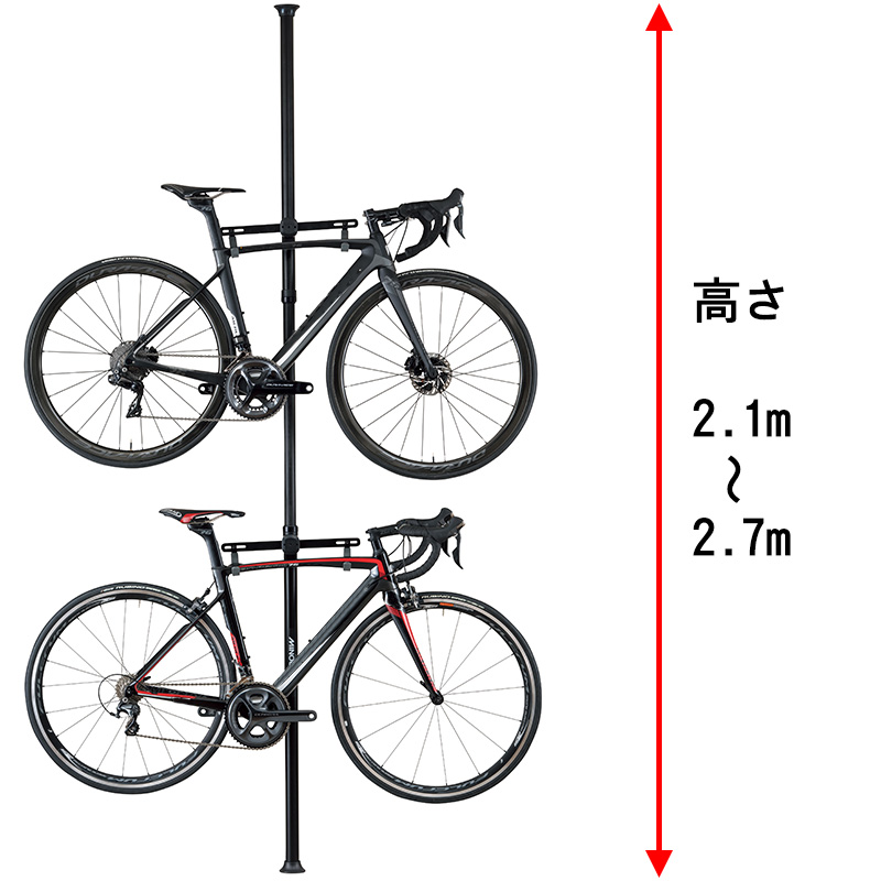 - ポールは無断階で2.1m~2.7mまで高さ調整可能。