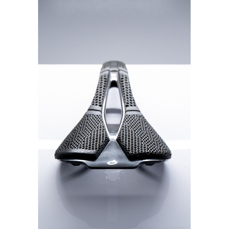 Nago R4の3Dバージョンと同様に、新しいSCRATCH M5 PAS 3DMSSのカバーは、ベストセラーのScratch M5モデルにすでに採用されているPrologoのMSS(マルチセクターシステム)技術と、デジタル光投影(DLP)、酸素透過性光学系のエンジニアリンググレード材料を使用し、パフォーマンスサドルに適した機械的特性、立体的解像度、表面仕上げを備えたポリマー部品を製造する革新的な3Dプリントプロセスを組み合わせています。この最先端の3Dプリントにより、サドルの両側に『3つの独立したセクターを作成』できるようになりました。これらのセクターは、個々の圧力領域に最適に適応し、サイクリストの体型に追従します。各セクターは、異なる複雑な幾何学的形状、さまざまな密度、差別化された弾性係数を備えた二重の上部層と下部層を備えています。3D 製造技術の利点と、耐久性と弾力性に優れた素材を組み合わせることで、サドルの各セクションの位置と機能に基づいて独自の特徴が最適化されています。