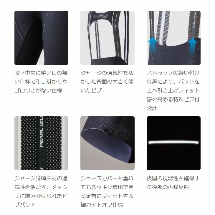 - 縦横自由にストレッチして通気性も高い薄手軽量4way素材と撥水性能を持つ素材を適所に使用して適度な保温力とスムーズなペダリングを実現