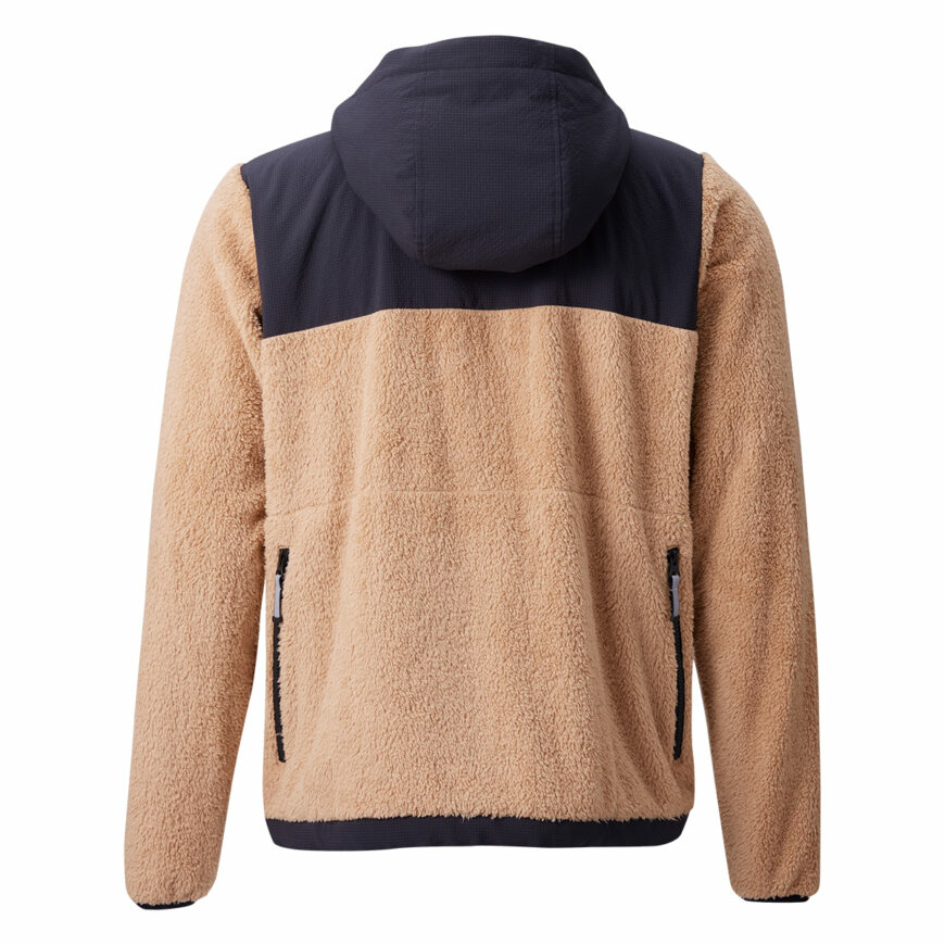両面ボアフリースの温かさに蓄熱保温機能をプラス。ストレッチ性と防風性の高い、凹凸感のあるカジュアルテイストのタフタ素材を組み合わせ、サイクリングに必要な機能も備えたフード付きフリースジャケット。前身頃はボリューム感のあるフリースの裏地に防風素材を配置し、冷気をシャットアウト。ボアフリースは環境に配慮した素材を採用。