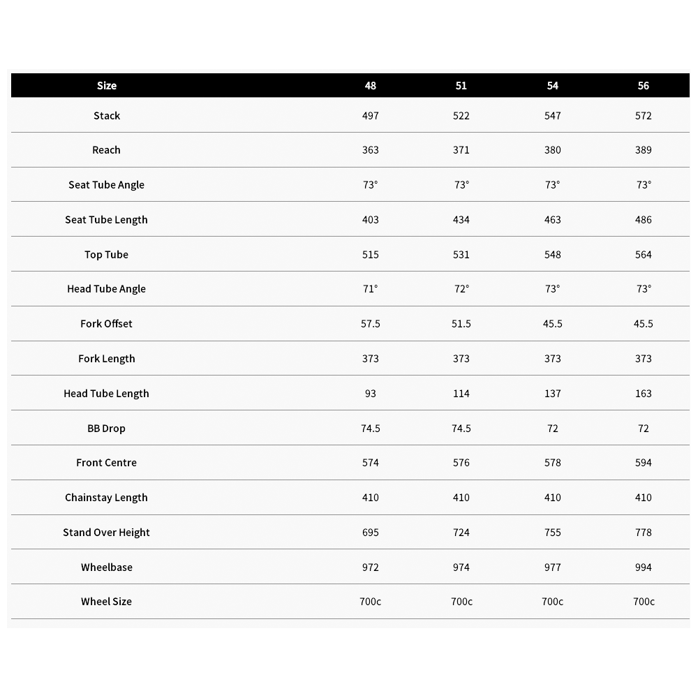 ジオメトリは各サイズごとに最適化され、反応性と直進安定性を高い次元で両立。