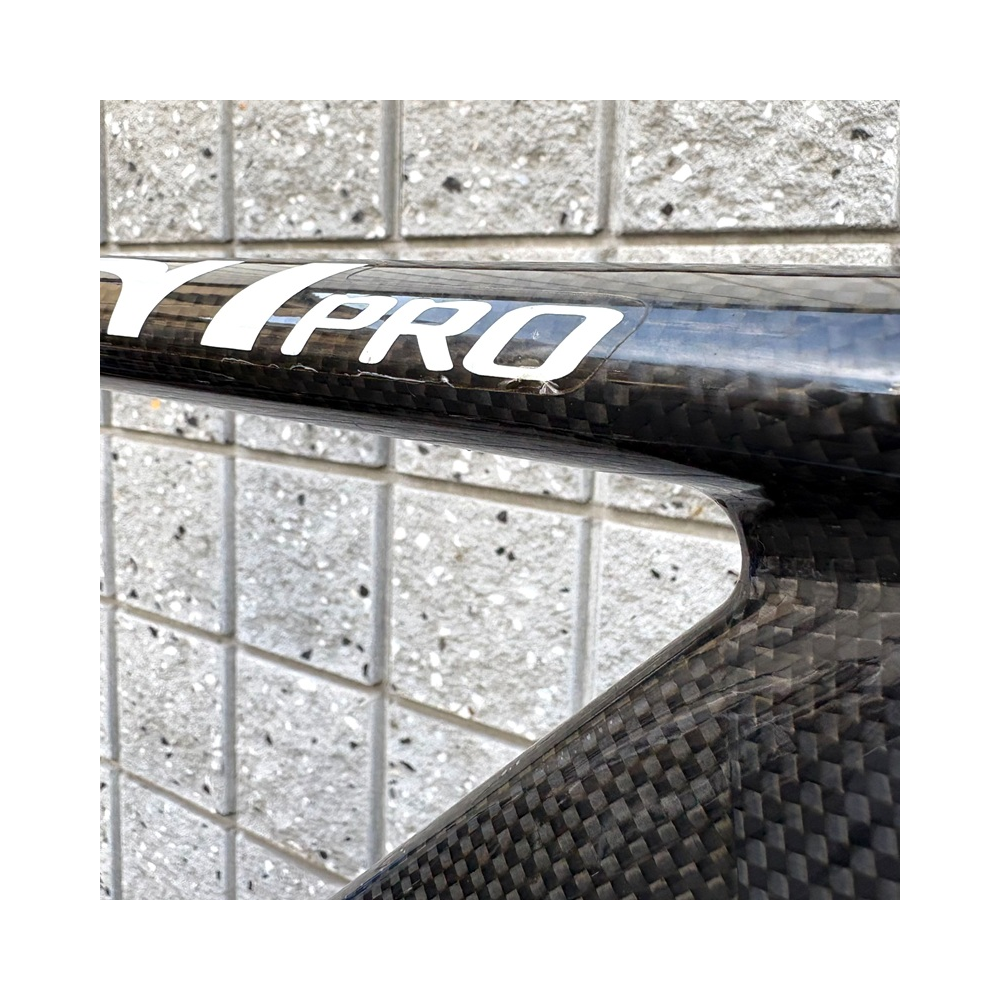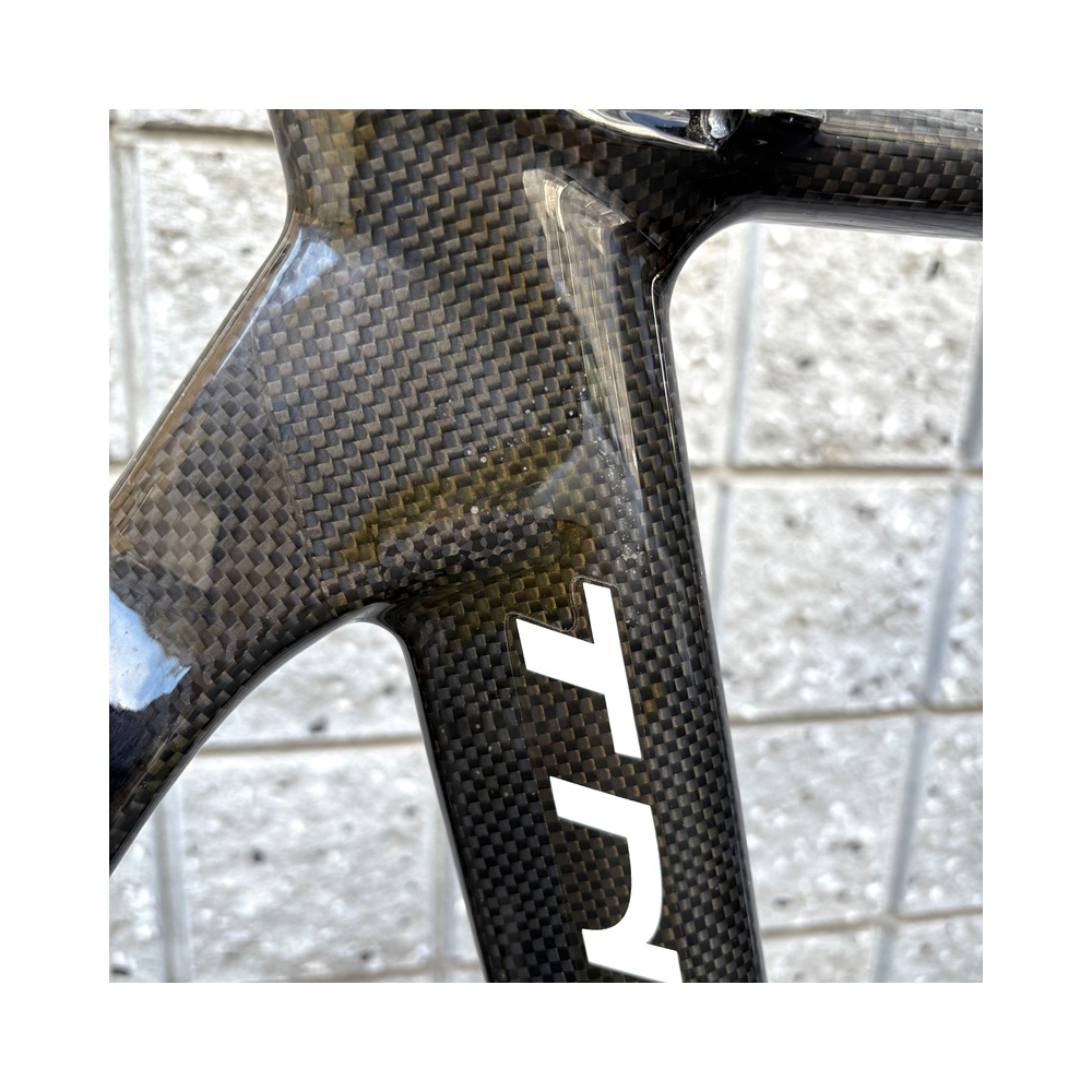 ハイモジュールカーボンを採用した、TT タイムトライアルに使用できるカーボンフレームです。空気抵抗に優れたエアロダイナミックデザインを採用しています。