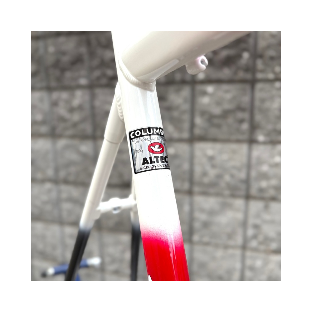 長期保管商品となります。保管による小傷や汚れ、デカールにひび割れがございます。予めご了承の上、ご購入いただきますようお願いいたします。また当時のビンテージフレームとなりますので、ご使用いただけるタイヤ幅は23cまでとなります。