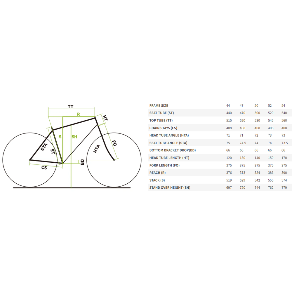 ディスクブレーキ用フルカーボンフォークに、アルミニウムフレームを採用し、コンパクトな操作部でレスポンスの良い変速を実 現するShimano Soraを搭載したSCULTURAのエントリーモデル。ケーブル類を内装したクリーンなシルエットや、MERIDAならで はの高品質な塗装と溶接の仕上がりはもちろん、乗るたびに感じられる高性能な走りを実現。