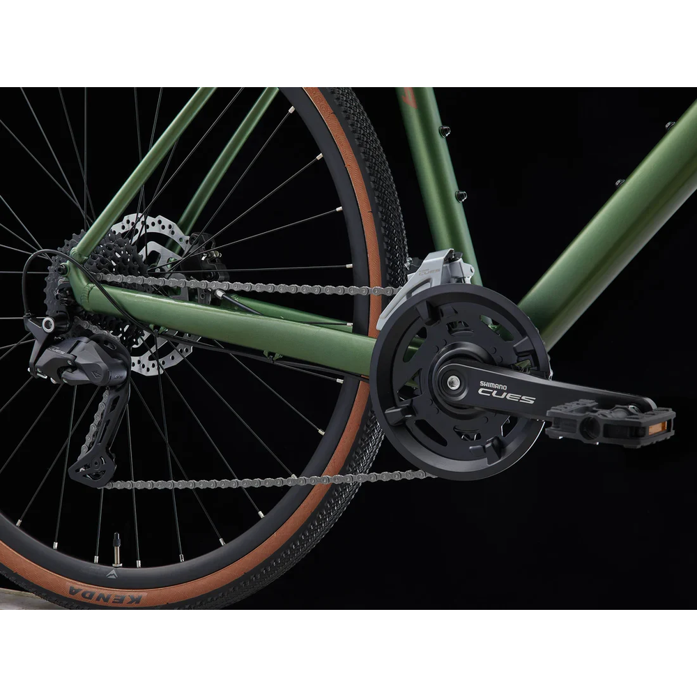 最新世代のMERIDAデザインを取り入れた新型フレームを採用したフラットハンドルロードバイクのハイエンドモデル。モダンで スポーティなデザインのフレームとパーツアッセンブリを持ち、35Cタイヤの装着により街中の段差での快適な乗り心地と転がりを 両立。フィットネスやコミューティングだけでなく、ツーリングでも活躍するフロント2速&油圧ディスクブレーキ仕様。