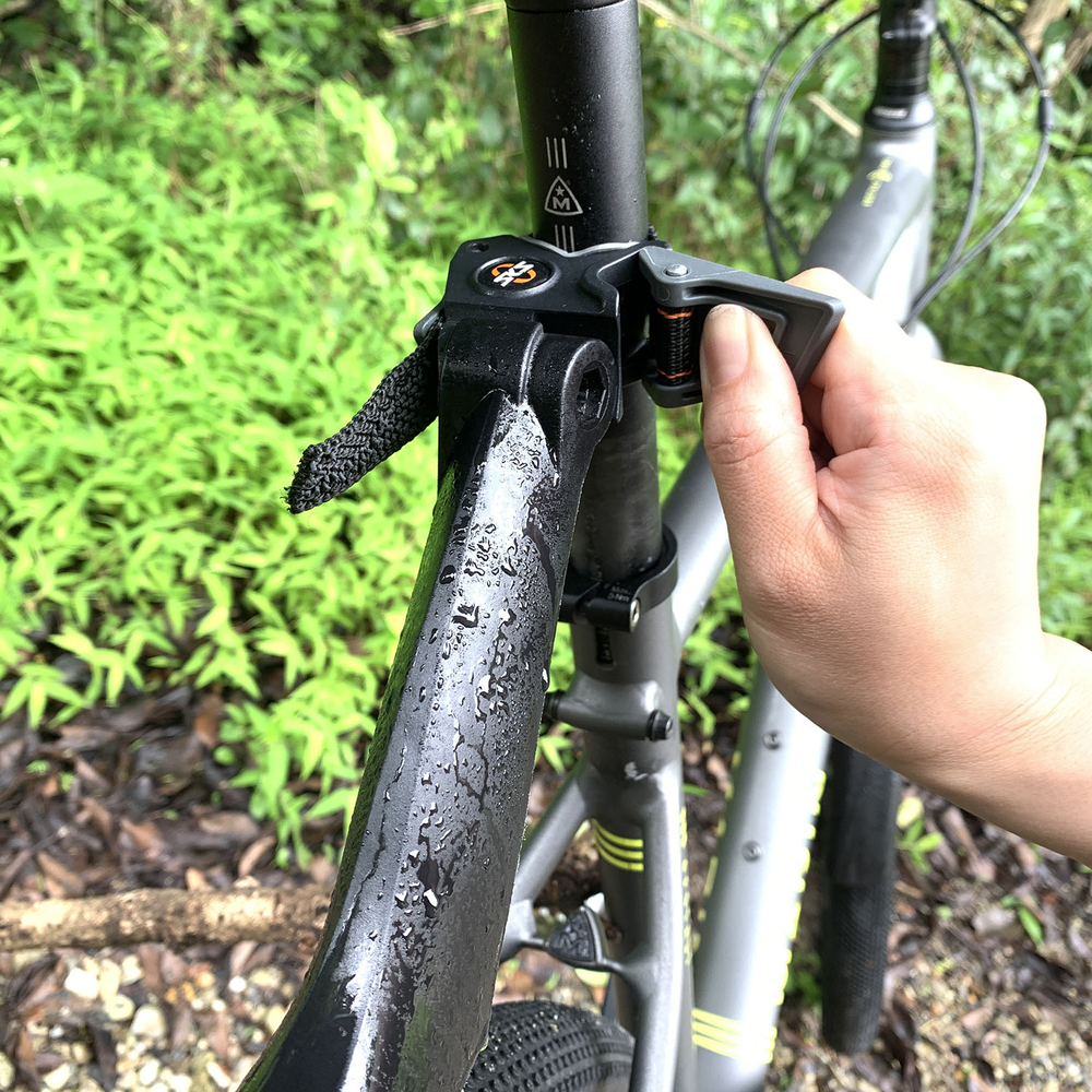 シートポストにワンタッチで装着でき、角度調整も可能。