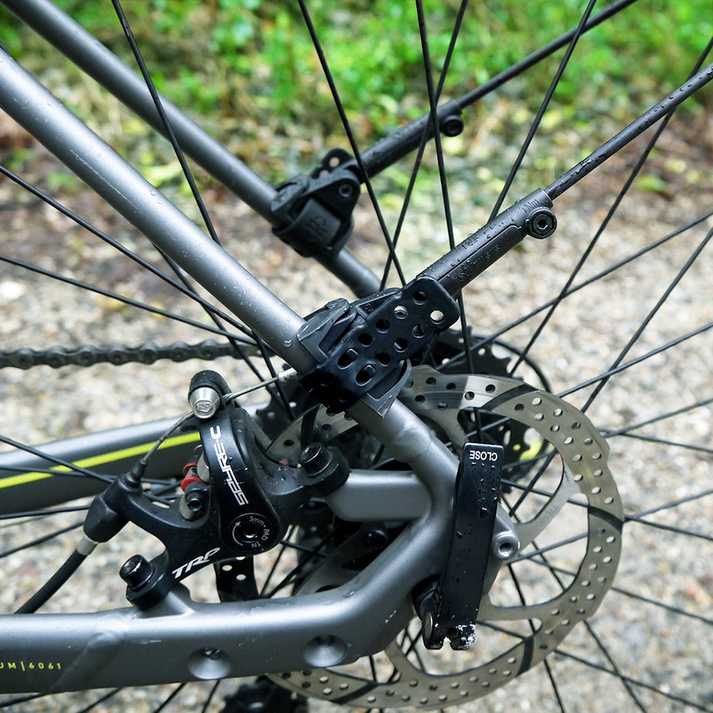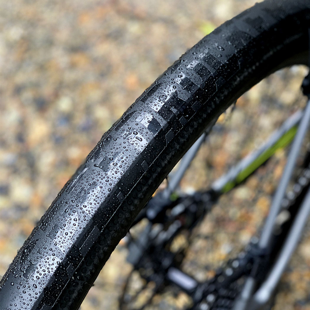 フロントは分割式のスポイラーを採用し、水を集め下方に導き泥跳ねを抑えるマッドブレーカーを搭載。水や泥跳ねがライダーの顔にかかるのを防ぎます。リアは長さ調整可能なテレスコピック機能搭載で、シートチューブまで広範囲にわたり水や泥跳ねをガードします。