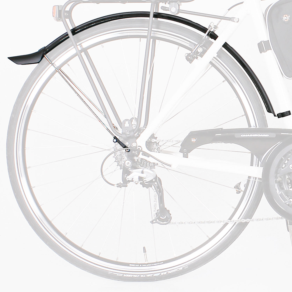 マッドガードは、外部からの衝撃に強い、高性能なプラスチックで作られており、万が一スポークに異物が引っかかったときでもリリースされるESC セーフティシステム付きのステーを採用しています。