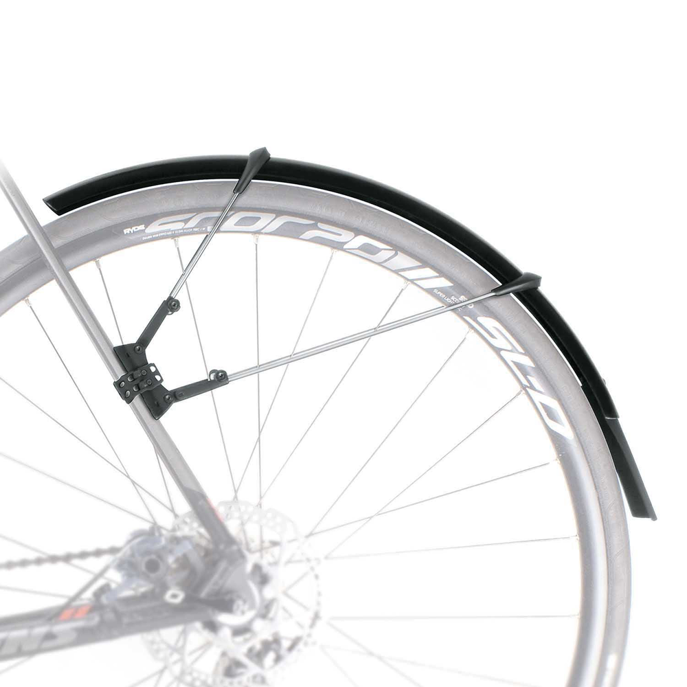 クイックな脱着が可能なロードバイク用フェンダー。振動に強い金属製のステーは、寸法・材質までこだわりぬいた構造で、ヨーロッパの石畳を走行する際の激しい振動にも耐えるほどの安心設計。また、取付機構は可動部の自由度が高く、あらゆるフレーム形状にフィットし、ラバーバンドは幅広で丈夫な形状のためズレることなくしっかりと固定することができます。