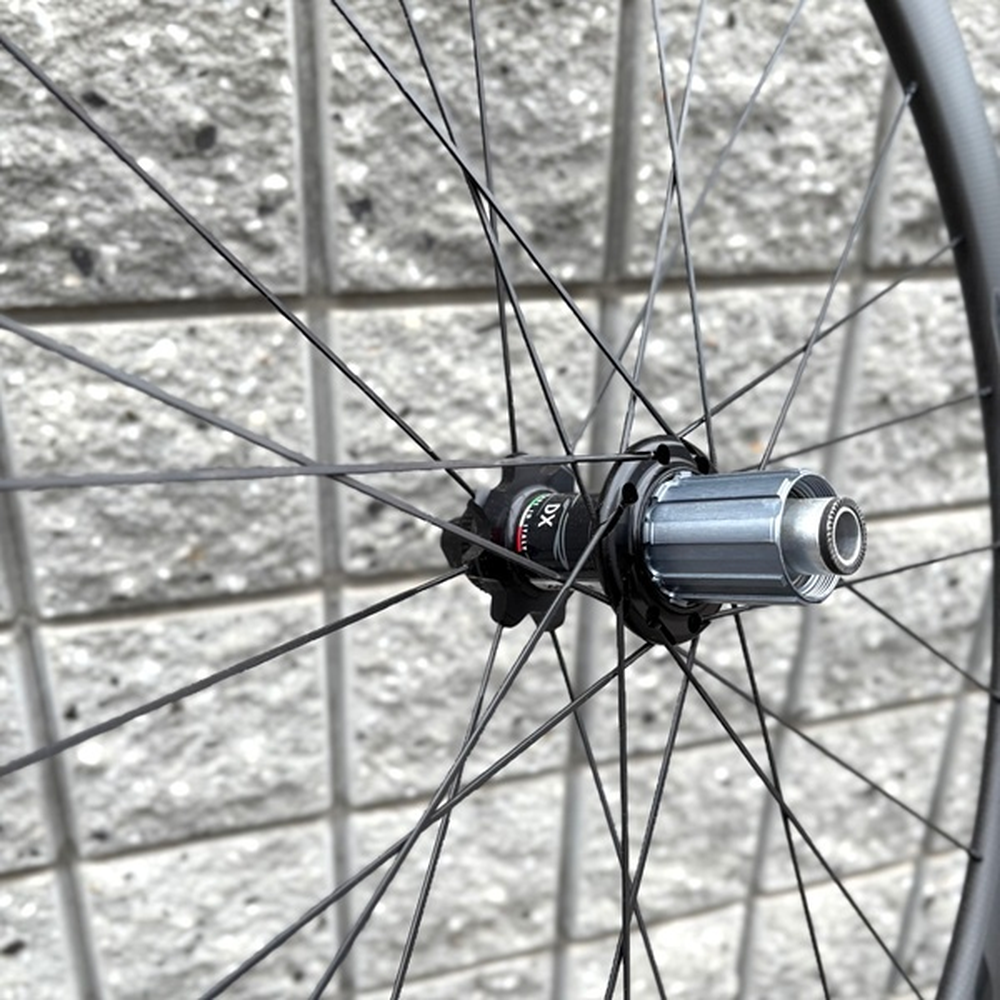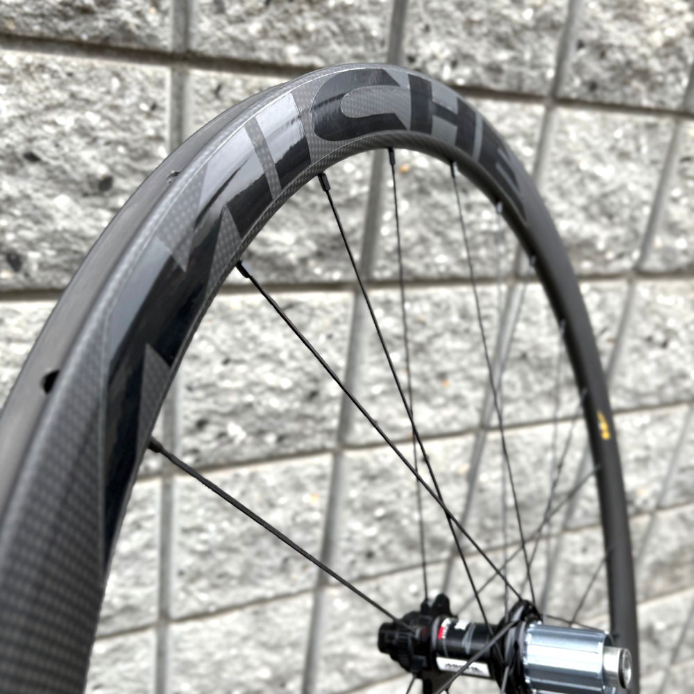 イタリアンブランドMICHEのディスクブレーキ対応フルカーボンチューブラーホイールです。38mmハイトの3Kカーボンリムに、剛性を高めるためアルミ製のハブ、サピムのスポークを採用したモデルとなります。