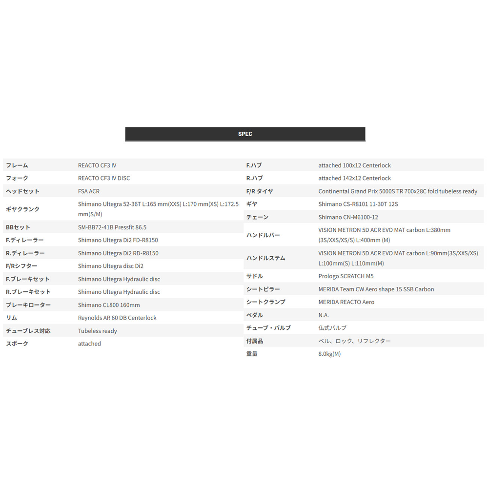MERIDA (メリダ) REACTO 8000 (リアクト8000) 2025年モデル エアロロードバイク完成車