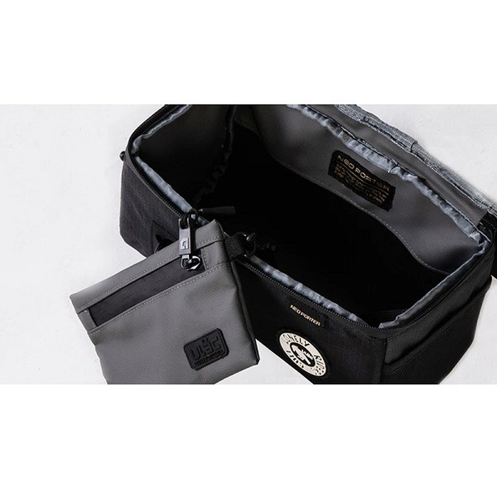 ディテール面では、ダブルジッパーにより素早く簡単に開閉できるようになっています。さらに、内部にはカードや小銭などの収納にも便利な防水仕様の小型ウォレットが付属しています。