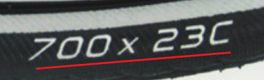 タイヤの側面にサイズ表記がございます。(写真のタイヤサイズは「700×23C」です)